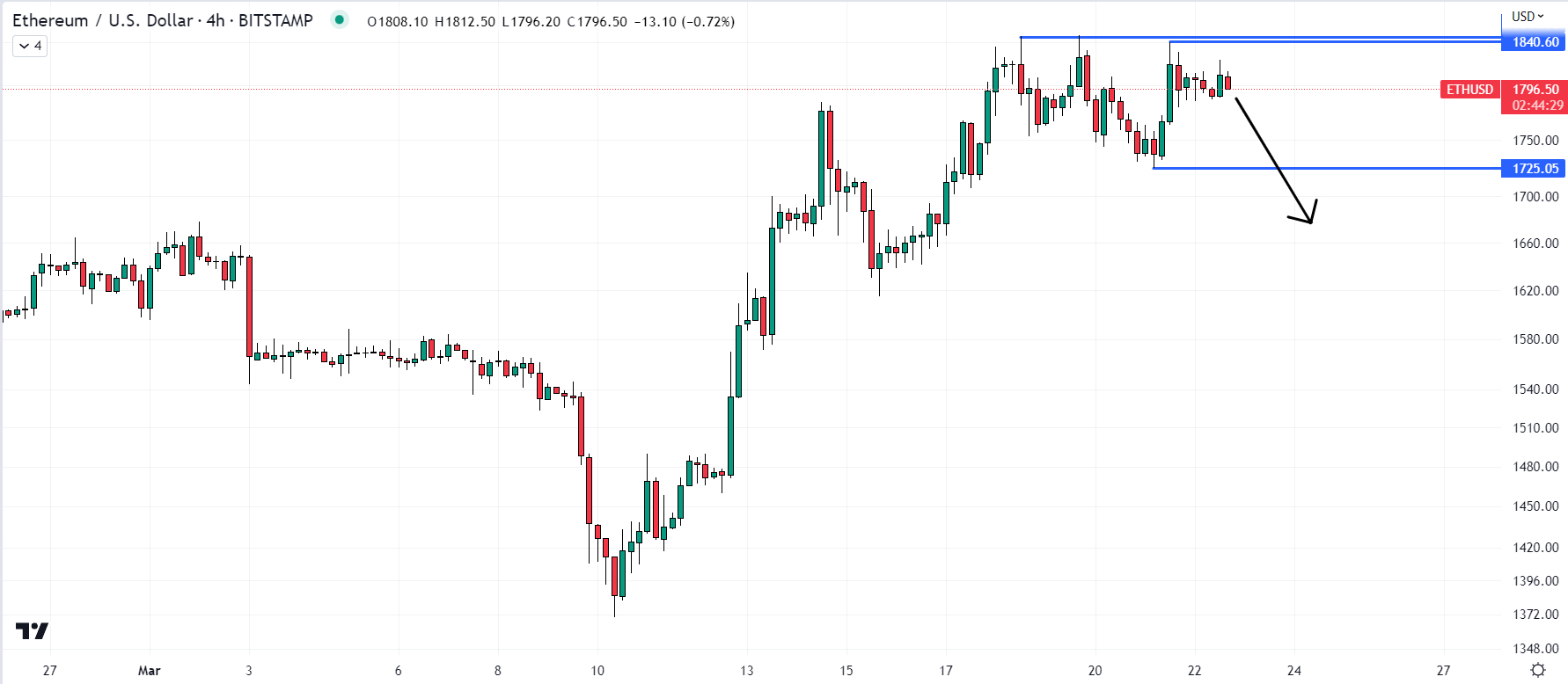 Ether may simply drop to contemporary weekly lows below $1,700 if the Fed’s message is interpreted as extra hawkish than markets had been anticipating (i.e. they play down monetary stability dangers and emphasize the inflation battle isn’t over).