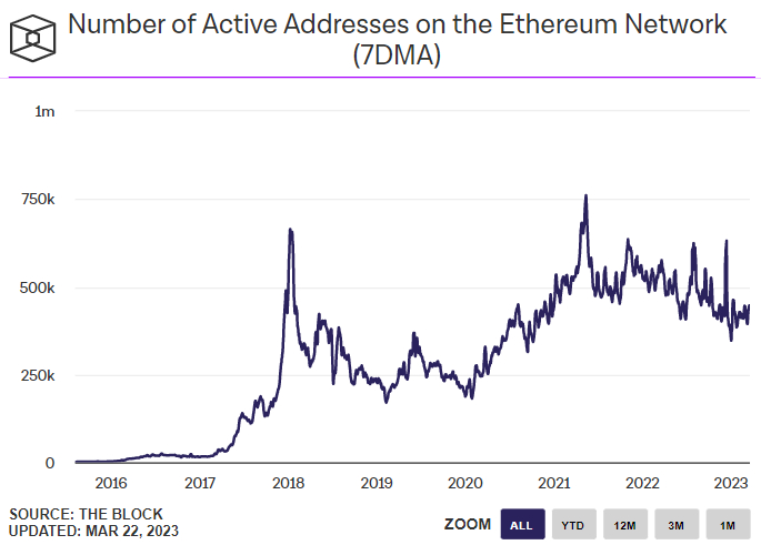 Exercise on the Ethereum blockchain, as per on-chain knowledge introduced by The Block, is but to point out the sort of pickup that has traditionally been wanted for an ETH bull market to actually get going.