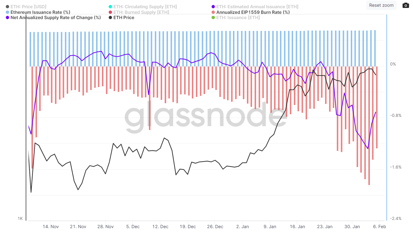 Greater charges are an indication of upper Ethereum blockchain utilization, which can additionally be certain that the Ethereum inflation price stays damaging within the close to future, Bernstein mentioned, declaring that the ETH provide has been in deflation for over two weeks now. In keeping with Glassnode information, Ethereum’s web annualized price of provide change was final round -0.7%.