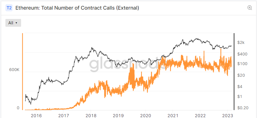 Relating to inside contract calls, Glassnode explains that “builders of sensible contracts can even embody contract calls that are initiated from inside the executed sensible contract… these are referred to as Inner Contract Calls and allow extra advanced and composable programs to be constructed and designed by builders”.