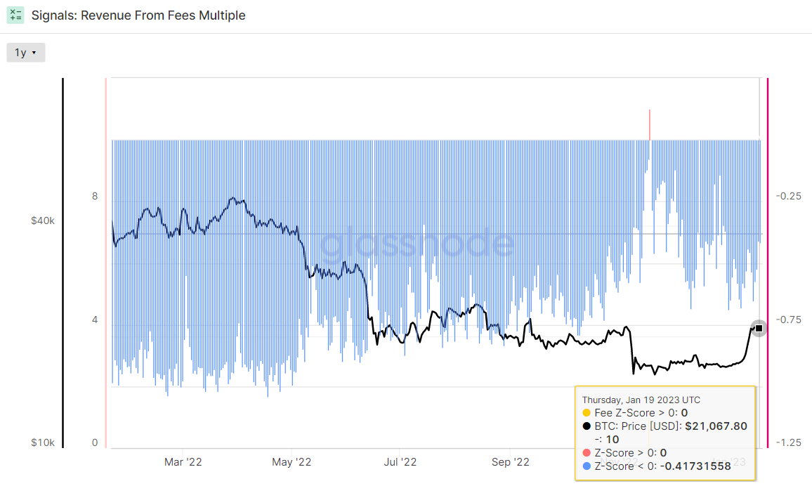 Nonetheless, buyers ought to notice that one key on-chain indicator isn’t sending bullish indicators. Glassnode’s Income From Charges A number of nonetheless has a detrimental 2-year Z-score of round -0.41. The Z-score is the variety of customary deviations above or under the imply of an information pattern. On this occasion, Glassnode’s Z-score is the variety of customary deviations above or under the imply Bitcoin Charge Income of the final 2-years.