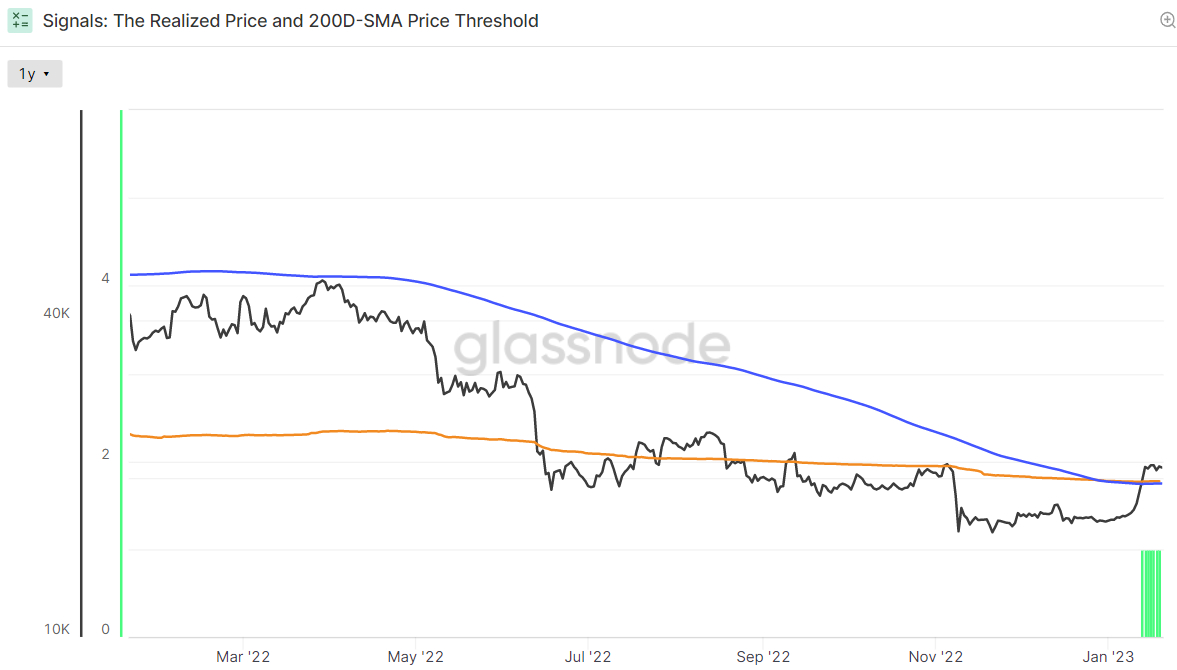 In wake of the spectacular rally in Bitcoin’s worth for the reason that begin of the 12 months, a number of technical and on-chain indicators have began flashing inexperienced that the bear market of 2022 is perhaps over. For instance, Bitcoin’s newest push greater that has seen it recuperate above $21,000 from its finish of 2022 ranges round $17,000 has seen the world’s largest cryptocurrency by market capitalization break again to the north of its 200-Day Shifting Common and Realized Value, each of which sit slightly below $20,000.